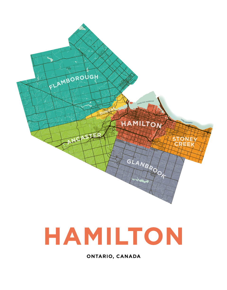 Hamilton, Ontario, Canada colorful high resolution vector art map