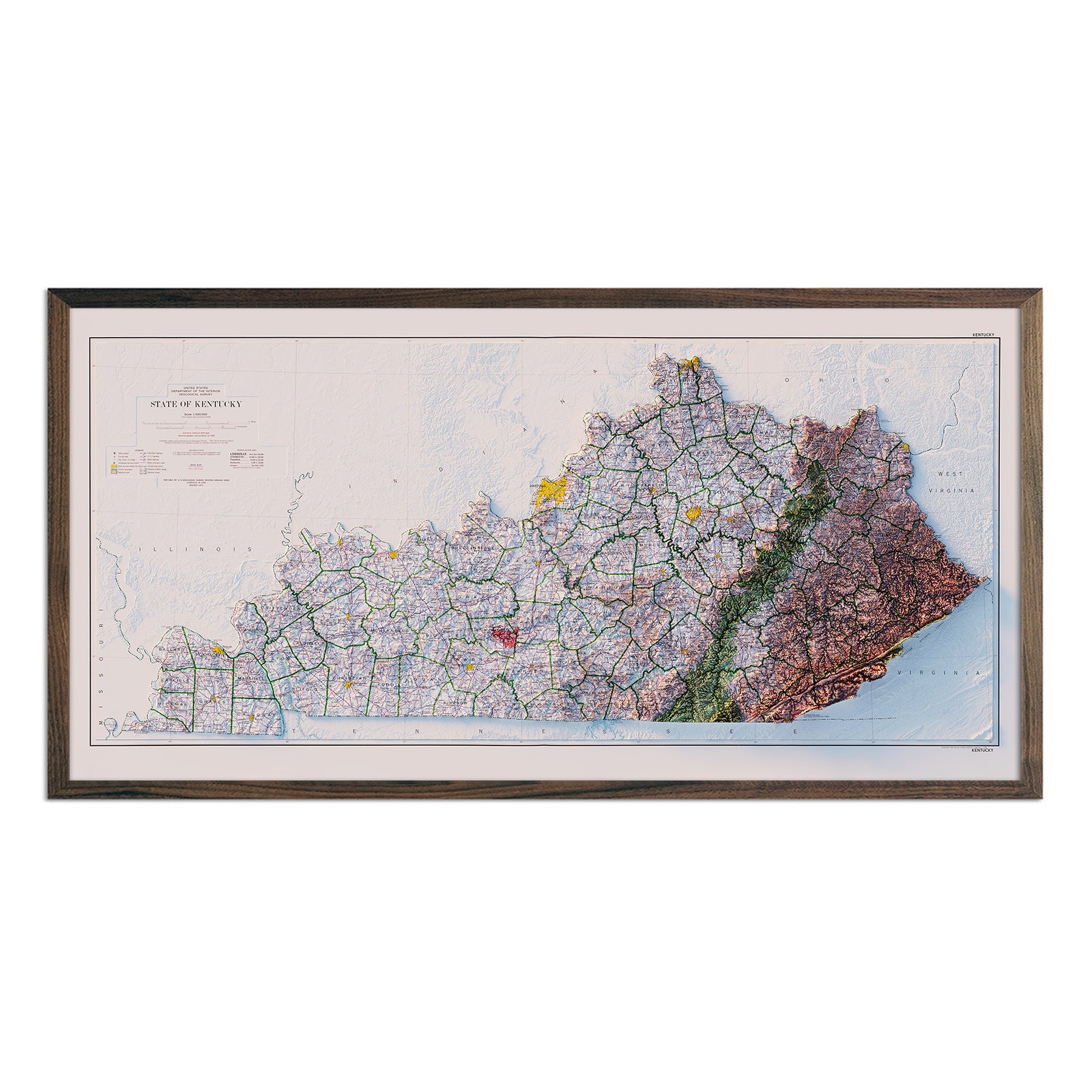 Vintage Kentucky Elevation Map Relief Map (1973) | Muir Way