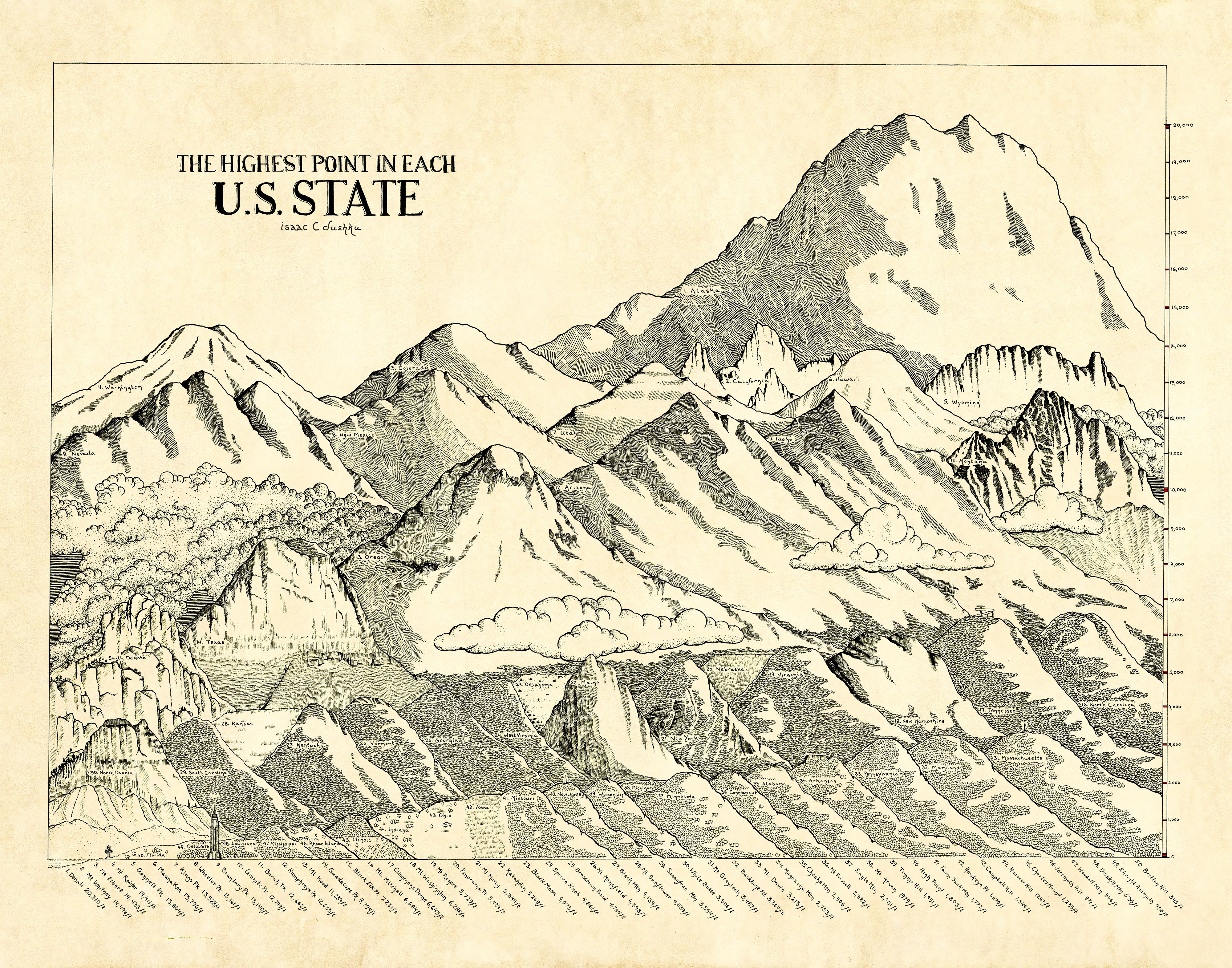State High Points Map – Each of the 50 states (plus Washington, D.C.) has its own highest point, from Alaska’s awe-inspiring Denali to the more humble elevations of states like Florida and Delaware. These high points . For state high points that are not mountains, see List of U.S. states and territories by elevation. For other lists, see List of mountain peaks of the United States and List of mountain peaks of North .